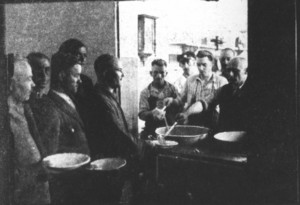 Sanitary conditions were even worse. Only in exceptional cases did the inmates receive a small ration of soft soap to wash themselves and their clothes. Normally, they had to clean their clothes with sand and cold water from three faucets located outside the building. The Jewish prisoners had to perform the most repulsive work, such as cleaning the latrines, and never received any soft soap.
